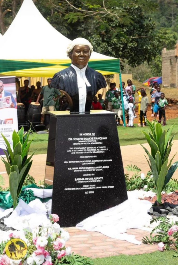 The statue and road were delivered by contractor Baffour Boamah Darko, Mawerehene of Akyem Adadientem and CEO of REBISA Company Ltd. Organisers said the GH¢2 million contribution covered both the statue and the road, which the community financed to commemorate Danquah’s contributions to Ghana’s political and intellectual life.